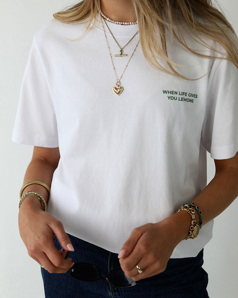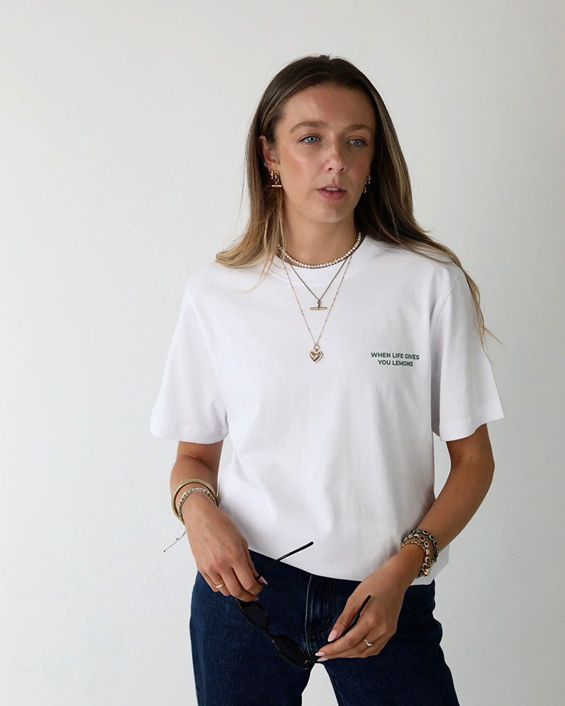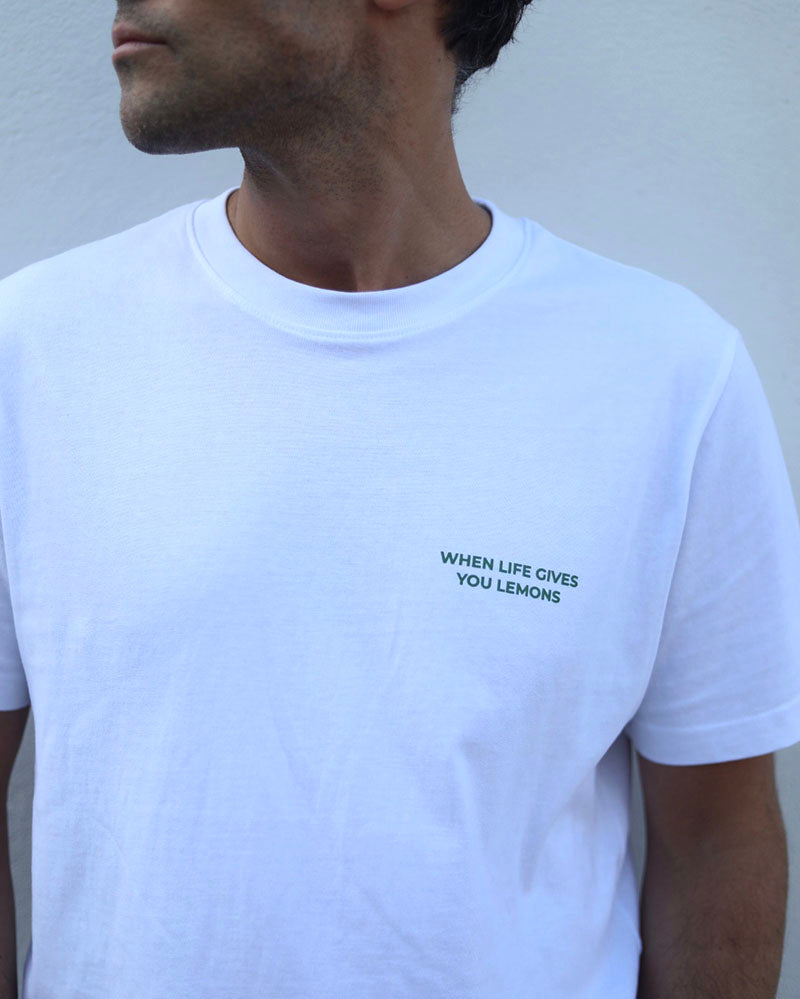 When life Gives You Lemons, Make Lemonade... One of Our Favourite Expressions Incorporated Into a Hand-Painted Back Print On Our signature Heavyweight Tee. 100% Organic cotton.