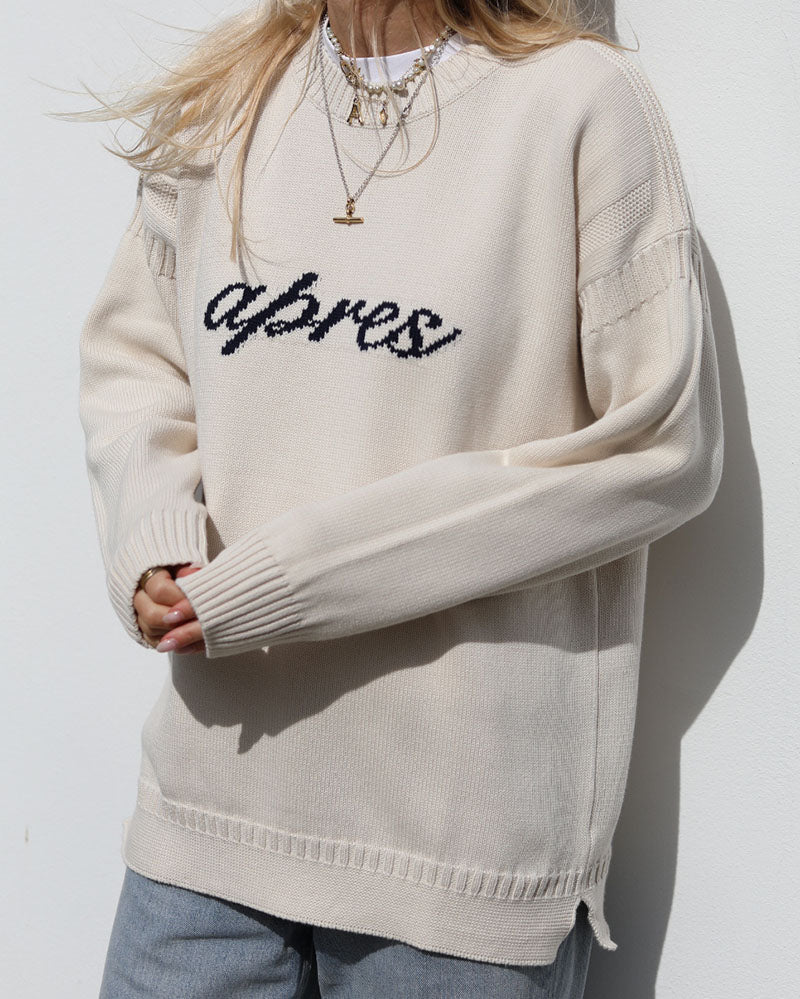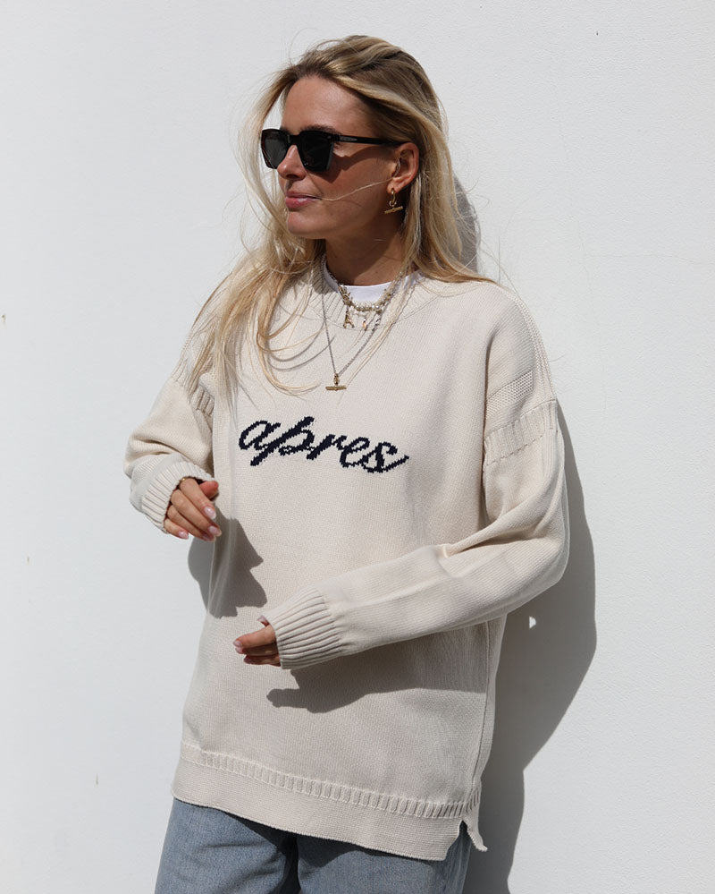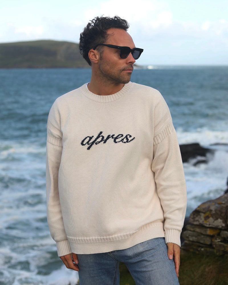 Our signature Apres Guernsey returns for AW25 with a new look. Made using 100% Cotton this cream unisex guernsey is designed to be shared, and made to be lived in.