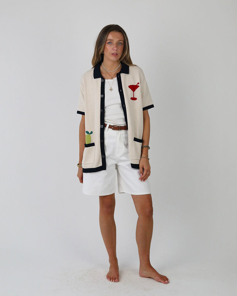Our Sell Out Nantucket Knitted Shirt is Back for Summer 26, featuring the new Martini edition. Designed for both him and her, knitted using 100% Cotton.